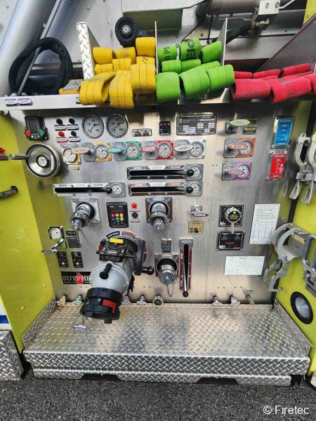 Other Information | Discharges: 6-2.5" * 3-1.75". Intakes: 2-6" driver and officer side, 2-2.5" driver & officer side. Multi-use apparatus, able to fit in tight apartment complex driveways, also utilized as ladder truck for rescue-to-pumper for fire extinguishing. |