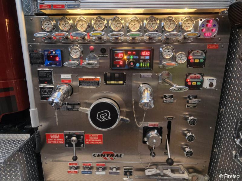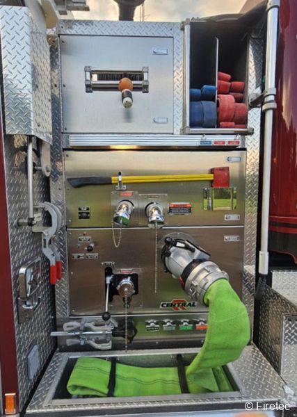 Other Information | Pre-connects: 3" rear hose bed preconnect; 2-1.75" crosslay preconnects: front bumper preconnect: Officer's side booster reel. Discharges: 2- discharges driver's side pump panel: Rear 2.5" Discharge; 2- 2.5" discharges Officer's side panel; front bumper discharge; Officer's side booster reel; hose bed discharge, deck gun and (2) cross lay preconnects. Intakes: 1- officer side panel, 1- front, 1- driver side pump panel |