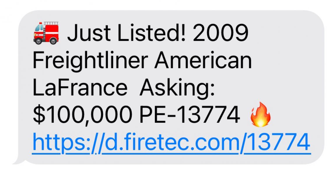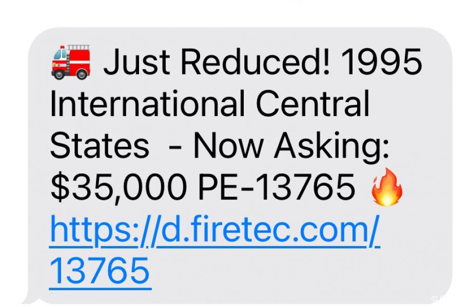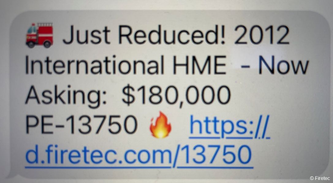 Want fire truck intel more often than your once-per-week Hot Sheet? Get TEXT Alerts: New Listings and Price Reductions as they happen!Firetec ID: | 13777 |