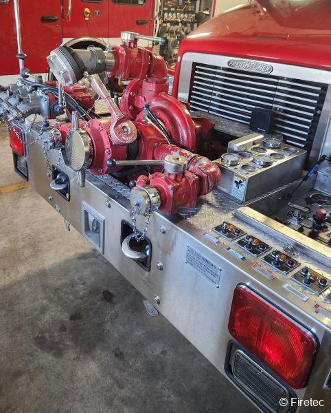 Other Information | The frontmount pump has been great for tight driveways. Discharges: 3-2.5" front, 2-1.5" crosslaya, 1-garden hose booster, 1-2.5" in hose bed, 1-4" stortz front Intakes: 2-2.5" front, 1-6" front, 1-2.5" dry fill rear ( overall length of 33' includes ladders ) |
