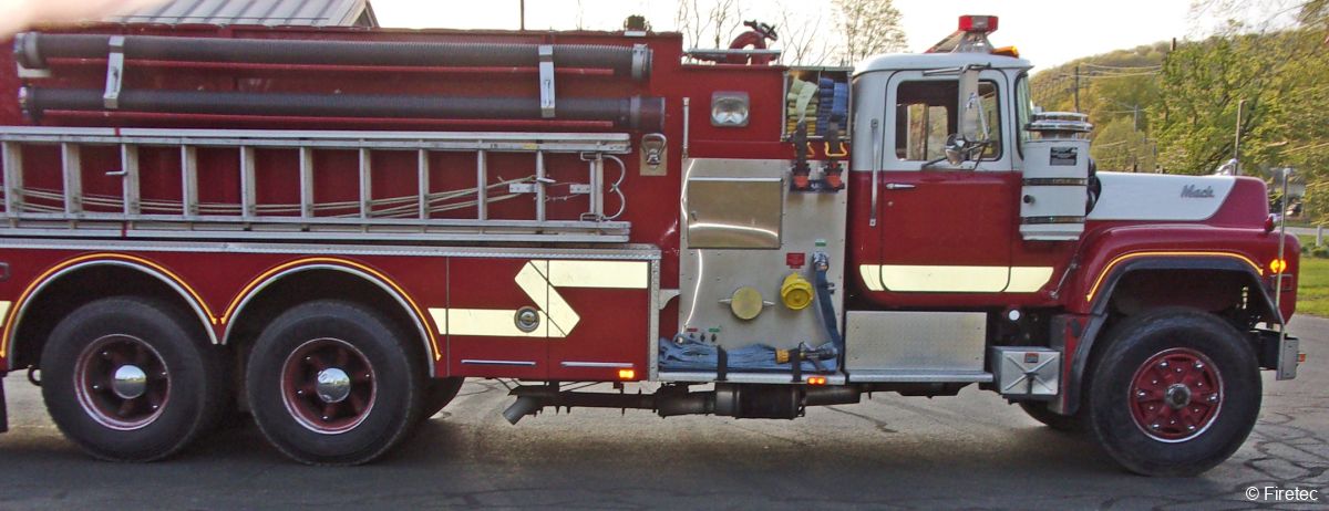Equipment included in the Sale | Deck gun, Newton electric rear dump, 2-2.5" rear preconnect discharges, 2- left side pump panel discharges, 2-right side pump panel discharges - 1-LDH, 2-crosslay 1.5" preconnects, storage for 35-foot ladder, 35' ladder, 14' roof ladder, Ward diesel system. |