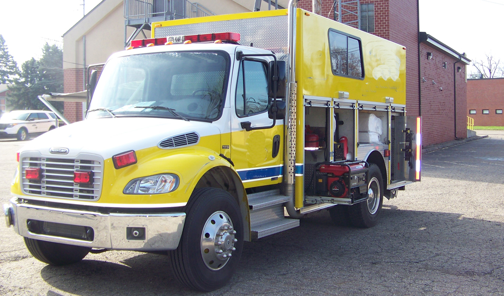 Freightliner/ E-One apparatus with 1250 gpm Hale pump and 1500 Polyi tank