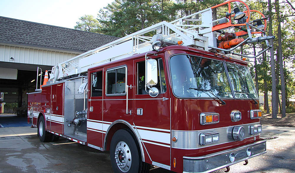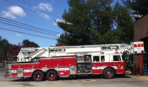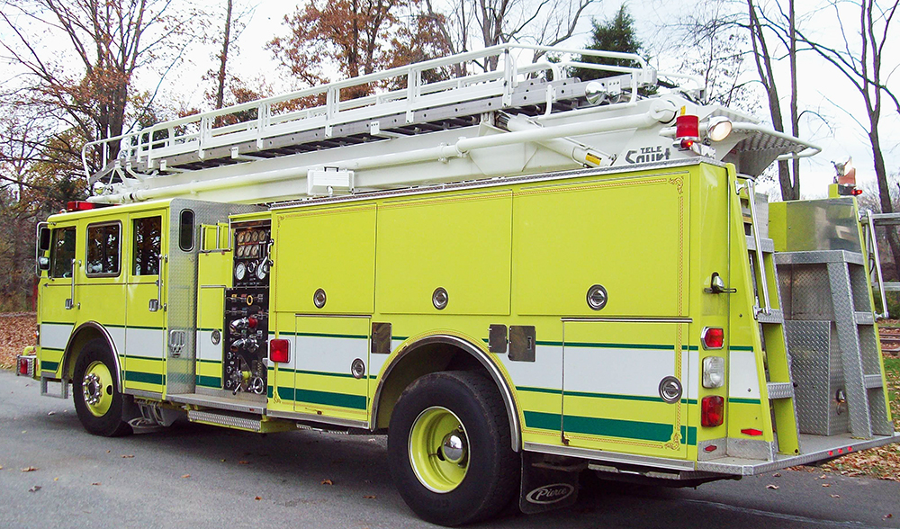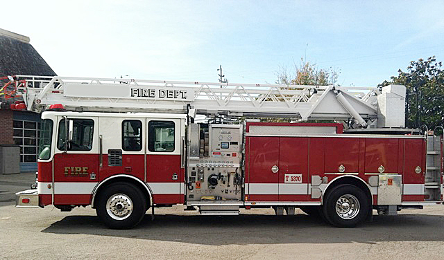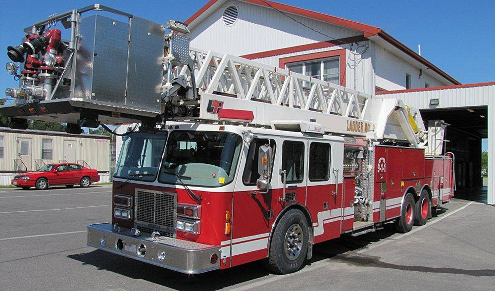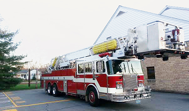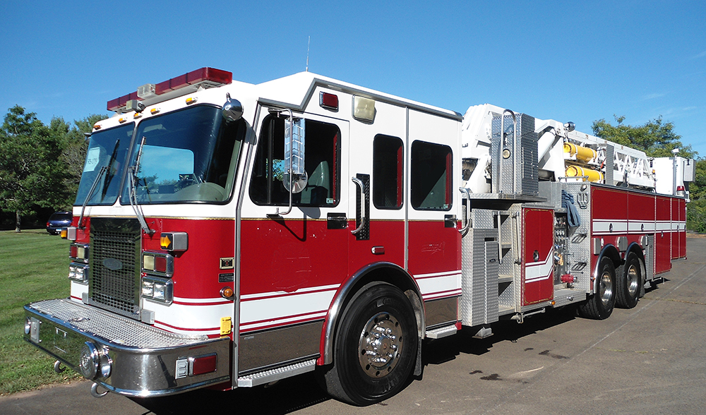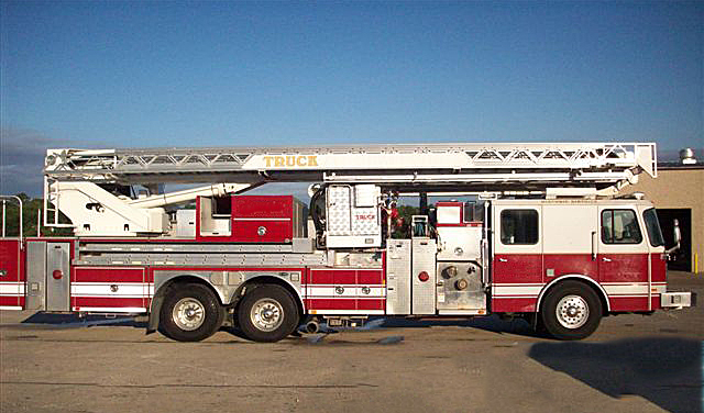 A great used fire truck buy on a used platform. This 100’ LTI did not have to travel far to its new fire department!