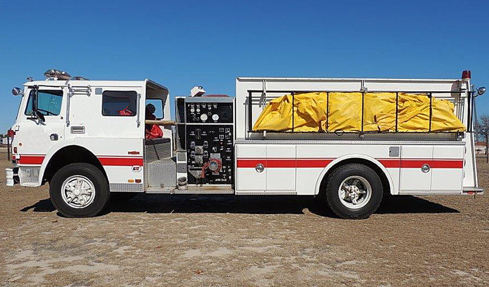This 1995 Smeal top mount pumping engine fire truck as a new home in North Dakota!